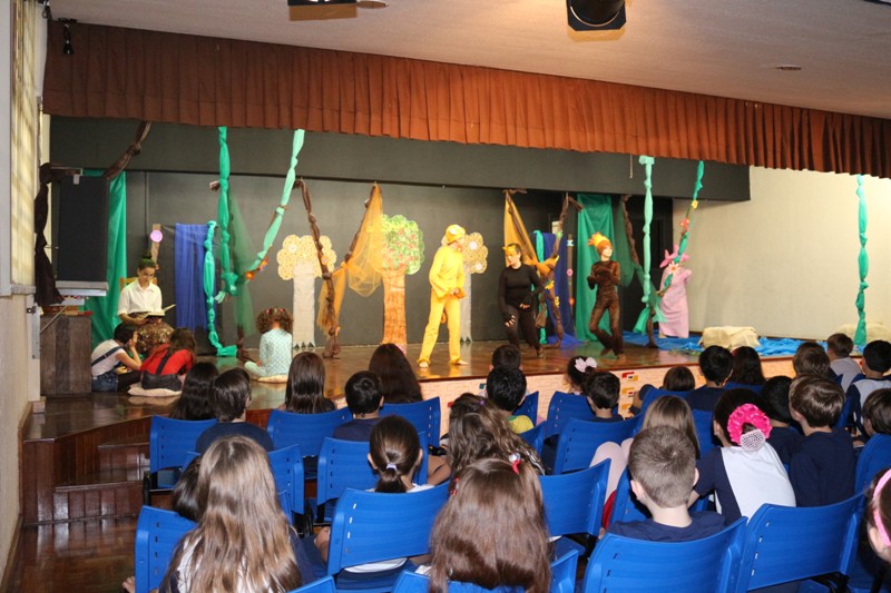 Para comemorar o dia do Folclore, sábado (22/08), estudantes do 6º Ano apresentaram, para crianças do 1º até 3º Ano do EF, a peça “Brinca Comigo”. O espetáculo traz inúmeros personagens do Folclore brasileiro, e além de interpretar, os personagens também interagiram com as crianças convidando-as para brincar. A peça é um projeto do componente curricular de Artes, orientado pela professora Miriam Viana.