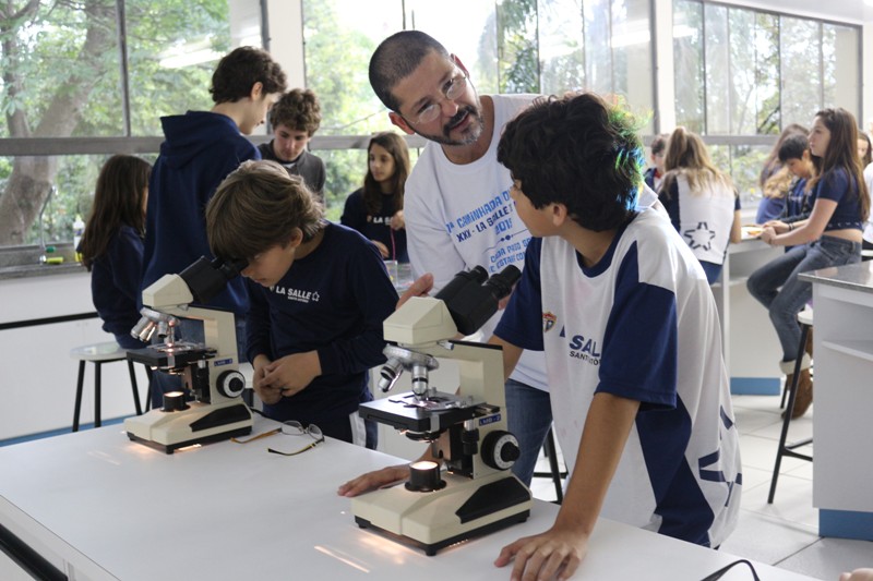 Hoje (10/09), os estudantes do 5º Ano do EF participaram de uma experiência de aprendizado diferente e bastante dinâmica. A proposta foi uma aula prática de ciências, orientada pelo professor de biologia Cesar Matos, e monitorada com a ajuda dos estudantes do 1º série do EM. A atividade ocorreu no Laboratório de Ciências do Colégio LSSA e teve como objetivo maior, contemplar os estudos realizados pelo 5º ano sobre o Corpo Humano.