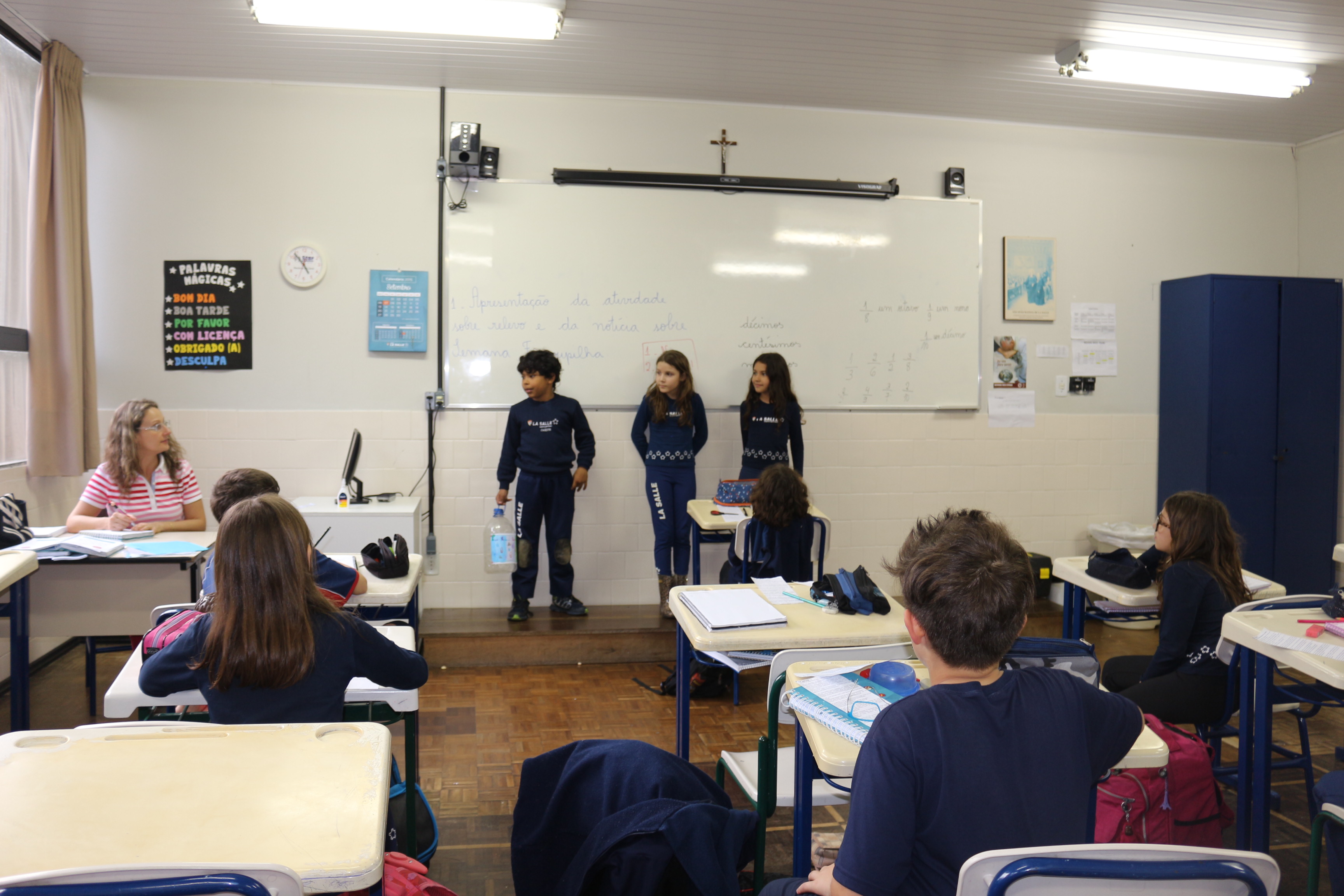 Na turma 133 cada aluno é responsável por trazer, diariamente, uma notícia sobre assuntos diversos, a leitura dessas notícias são um momento de reflexão a respeito de temas do nosso dia-a-dia. Um dos temas debatidos foi a materia do Jornal Coreio do Povo, publicada em agosto desse ano, que abordava a arrecadação de lacres de latinhas, ação que promove a doação de cadeiras de rodas.