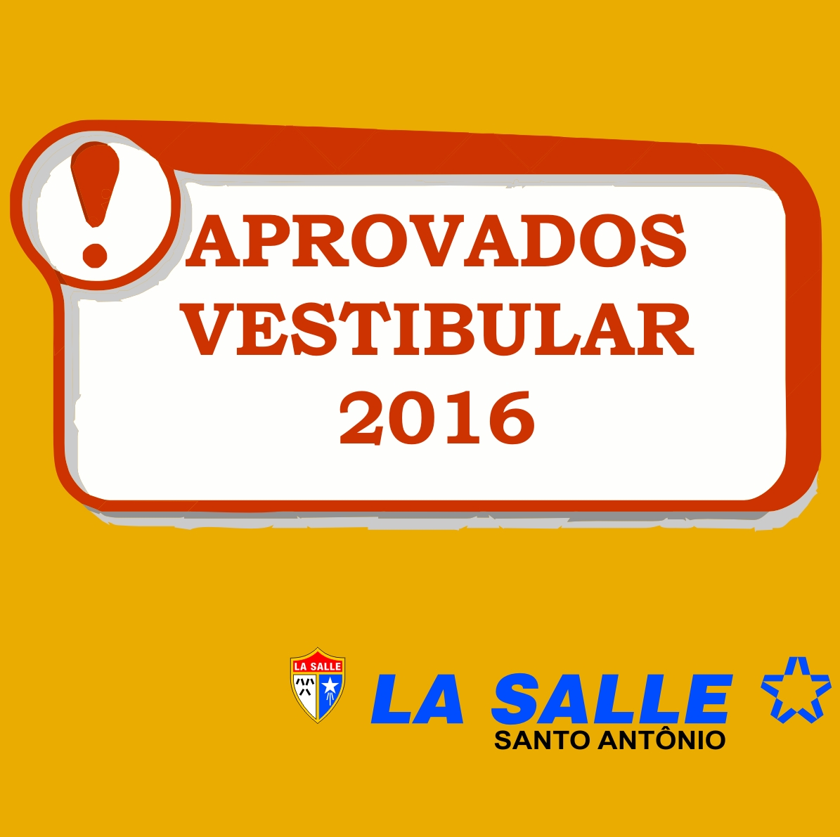 É com muita satisfação que o Colégio La Salle Santo Antônio parabeniza os vinte e cinco estudantes aprovados em vestibulares de universidades federais no Rio Grande do Sul e em outros estados do Brasil. Esse resultado é fruto da dedicação de estudantes e professores, que ao longo do ano de 2015 participaram de diversas atividades como: aulas multidisciplinares, palestras, oficinas e simulados oferecidos em conjunto com um projeto pedagógico consolidado, bem como, a parceria entre família e escola.