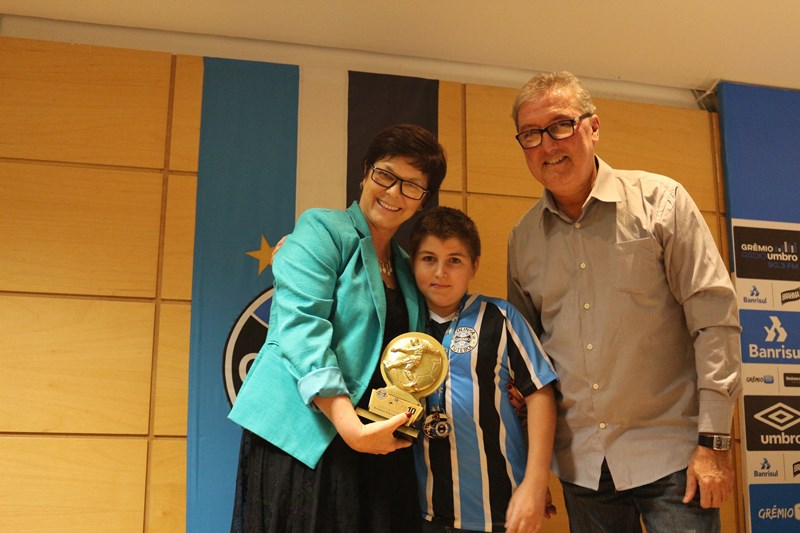 Na noite da última terça-feira (22/03), o aluno do Colégio La Salle Santo Antônio, Gustavo Franzen Barros, recebeu pela Escolinha de Futebol do Grêmio Porto-Alegrense, uma medalha de Atleta Nota 10. A Diretora Silvana Menegat também participou da premiação e recebeu um troféu como forma de agradecimento e reconhecimento pelo trabalho do Colégio.