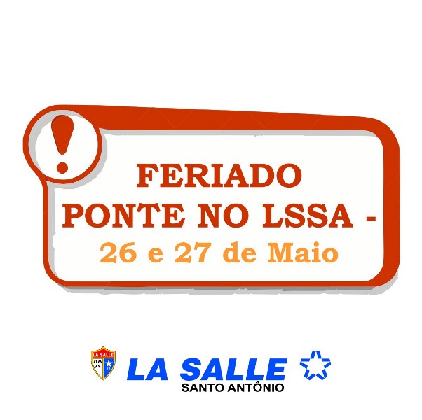 O Colégio La Salle Santo Antônio, informa que em decorrência do feriado de Corpus Christi (26/05), sexta-feira (27/05) será considerado feriado ponte, conforme o calendário escolar 2016.