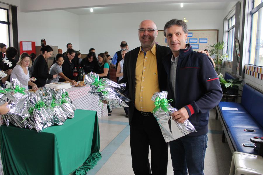 Nesta sexta-feira, 14 de outubro, véspera do Dia do Professor, os professores do Colégio La Salle São Carlos festejaram a data com momento de reflexão e oração na hora do recreio. Tanto com os dois grupos de professores da manhã como no da tarde, seguiu-se um pequeno coquetel, com entrega a cada qual dum brinde pelos 60 anos de presença lassalista em São Carlos.