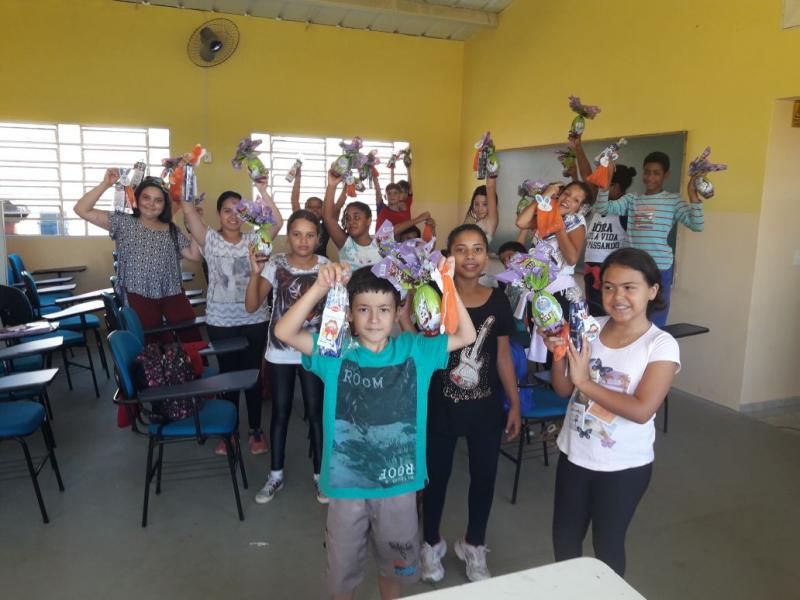 Os presentes de Páscoa foram recebidos pelas crianças e adolescentes da ASPE-Associação de Amigos São Pedro Julião Eymard, localizada no Residencial Parque Douradinho.