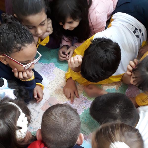 Com o mapa do Brasil os alunos expressaram suas visões e opiniões sobre a dimensão de nossa Pátria e tudo que ela representa.