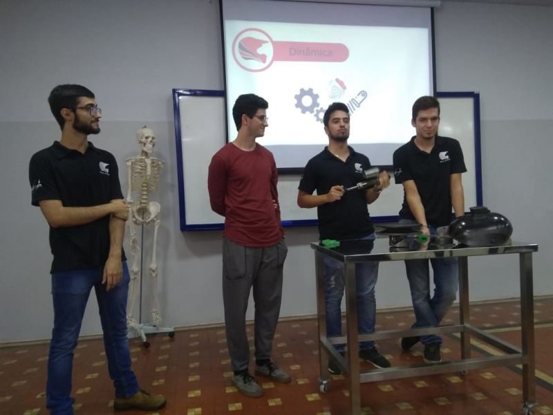 Na oportunidade, a equipe do BAJA explicou sobre a estrutura, atividades e objetivos do grupo; fizeram uma dinâmica apresentando várias peças de carro e sua função; exploraram um pouco o site da UFSCar (ufscar.org.br), mostrando os vários cursos oferecidos pela universidade; abriram espaço para perguntas e esclarecimentos sobre a palestra, sobre os cursos oferecidos pela UFSCar, os cursos que fazem, como escolher a carreira a seguir, entre outras coisas. Evidenciaram a grande importância dos estudos do Ensino Médio como base para os estudos universitários.