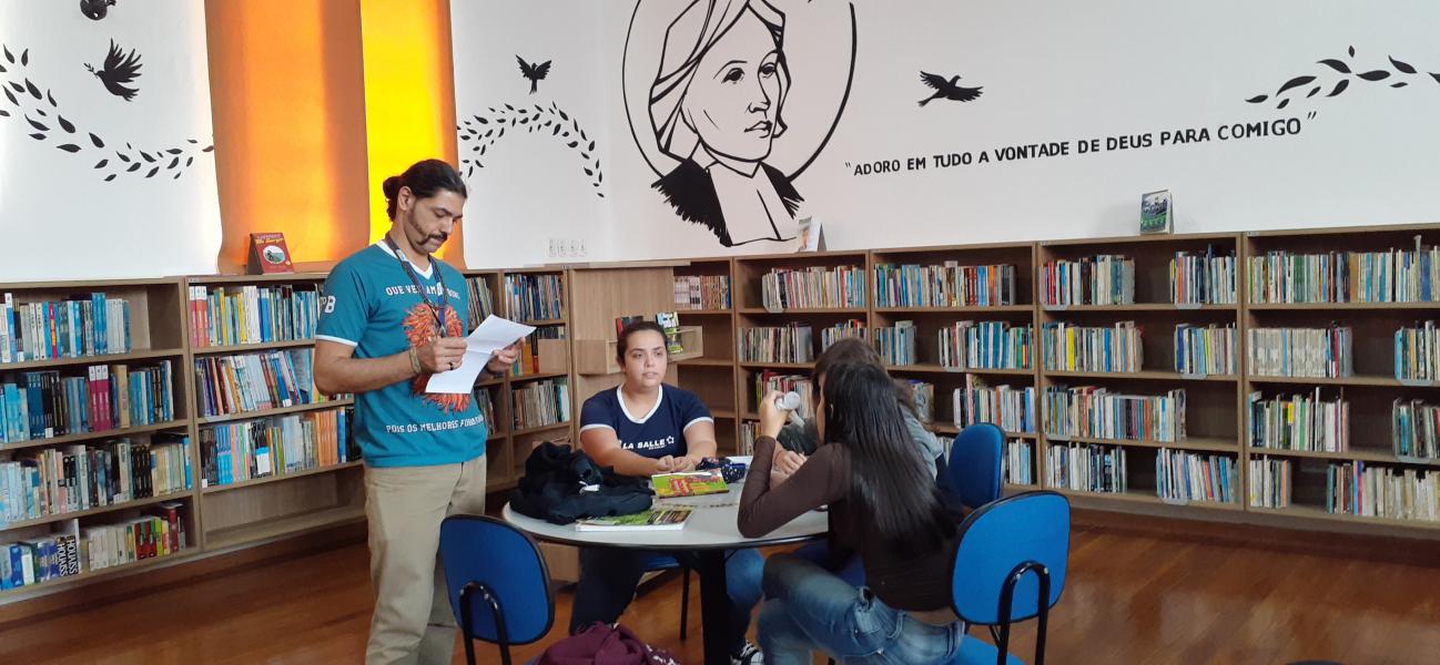 A mitologia greco-romana foi tema de pesquisa para os alunos da 3ª série A do Ensino Médio. Conduzida pelo Professor Anderson, a aula de história realizada na biblioteca proporcionou momentos significativos de aprendizagem.