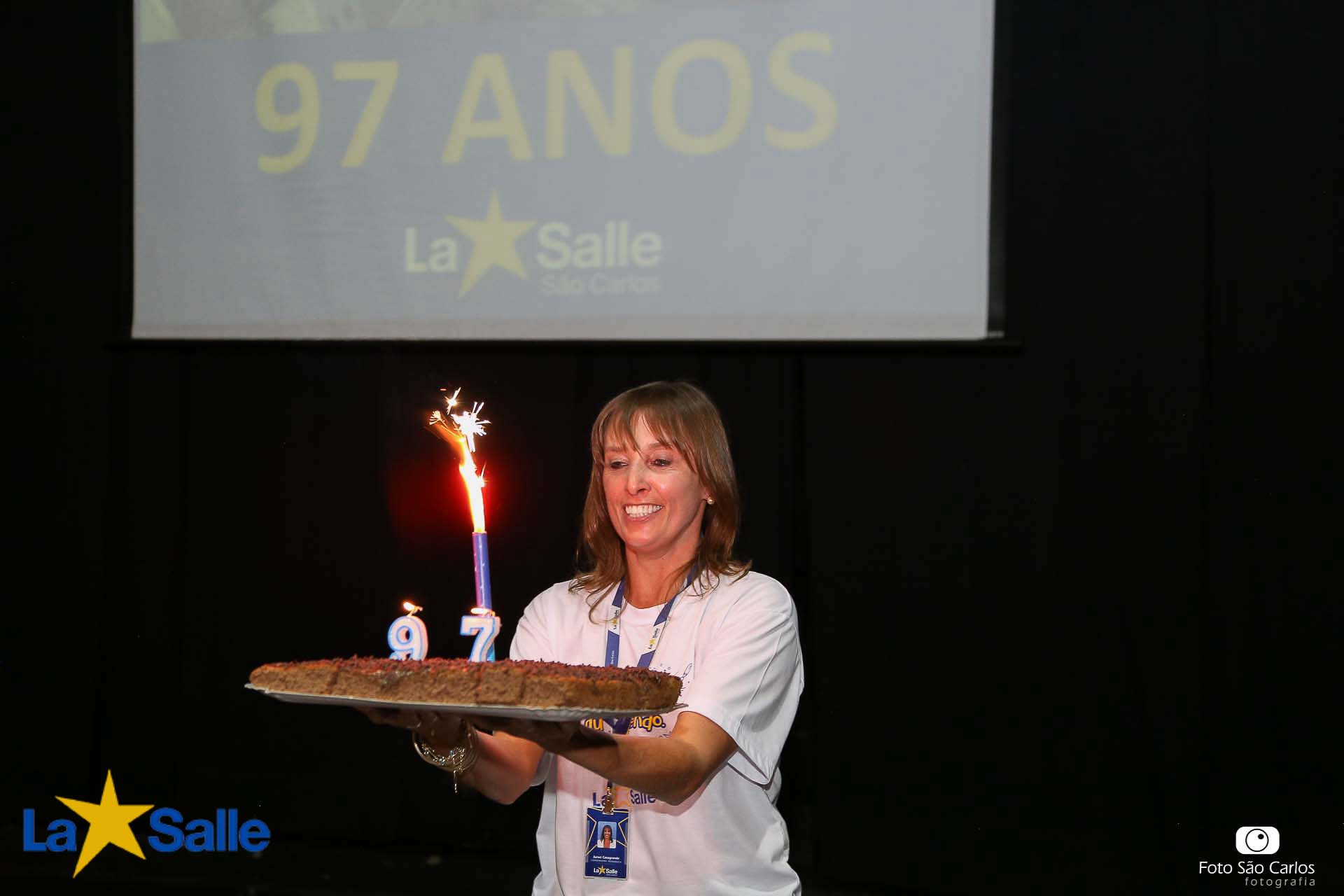 Para celebrar os 97 anos de Fundação do Colégio Diocesano La Salle São Carlos, reunimos os alunos para uma solenidade em nosso Teatro. Após saudação inicial do Diretor Alvaro Wermann, o tradicional "parabéns a você" foi cantado por todos os presentes, afinal temos muito para comemorar nesses 97 anos de dedicação à educação e contribuição na formação de tantos alunos.