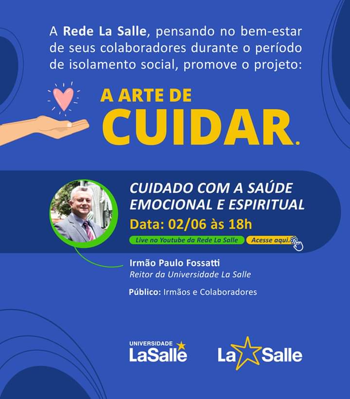 A Rede La Salle, pensando no bem-estar de seus colaboradores durante o período de isolamento social promove o projeto: A ARTE DE CUIDAR - CUIDADO COM A SAÚDE EMOCIONAL E ESPIRITUAL.