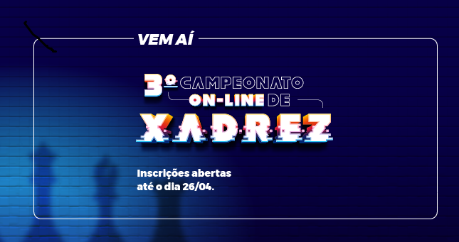 A competição será no dia 6 de maio, via plataforma Lichess, com a participação de estudantes do 6º ano do Ensino Fundamental à 3ª série do Ensino Médio. O período de inscrições vai até o dia 26 de abril, junto à Coordenação Pedagógica.
