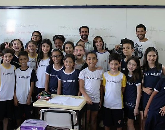 Nesta segunda-feira, 25 de abril, os alunos do 5º ano C e a turma de Oficina de Matemática do Ensino Médio do Colégio La Salle São Carlos receberam a equipe do jornal da EPTV, afiliada da Rede Globo em São Carlos, para uma reportagem sobre a aula de Matemática.