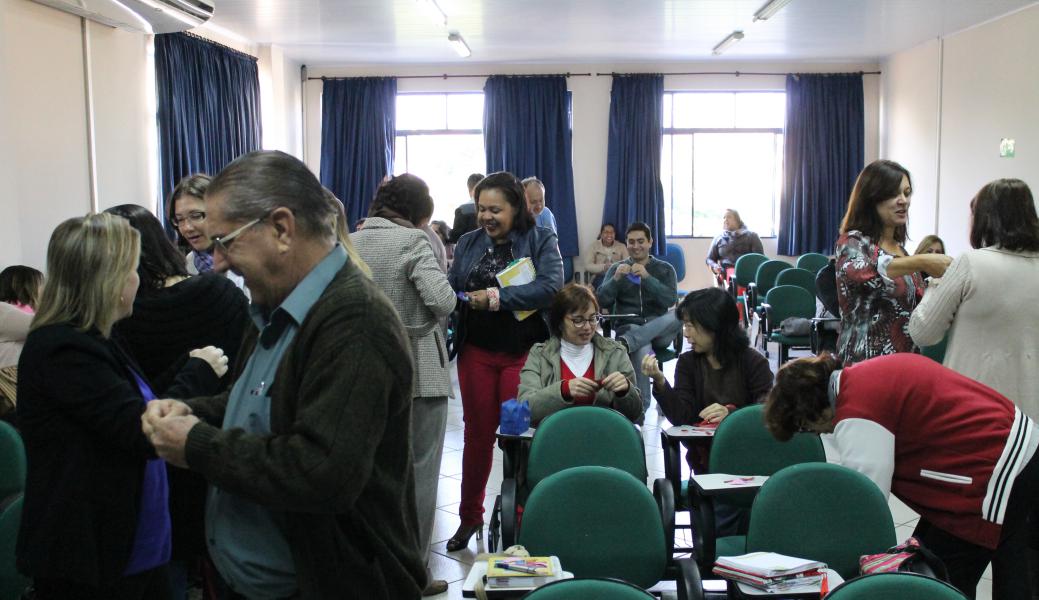 Após o momento de oração inicial e as palavras de incentivo do diretor, Ir. Moysés Romero Borges Oliveira, os professores foram organizados em 10 grupos para ler e conversar sobre os 3 componentes dessas matrizes: avaliação, competências e espaço escolar.