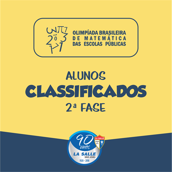 Oito alunos do Colégio La Salle São João foram classificados para a 2ª fase da 14º Olimpíada Brasileira de Matemática – OBMEP 2018. As provas da 1ª fase foram aplicadas no dia 5 de junho, no Colégio, envolvendo 20 questões objetivas, de múltipla escolha.