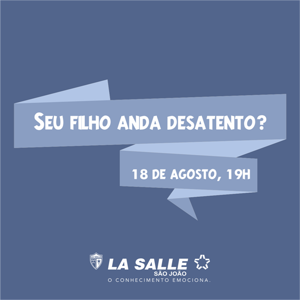 Nesta quinta, 18 de agosto, às 19h, o Colégio La Salle São João promove a palestra “Seu filho anda desatento?” com os psiquiatras do Hospital de Clinicas de Porto Alegre (HCPA), Marcelo Schmitz e Virgínia Rosa. O encontro debaterá sobre sintomas e características do Transtorno de Déficit de Atenção/Hiperatividade (TDAH).