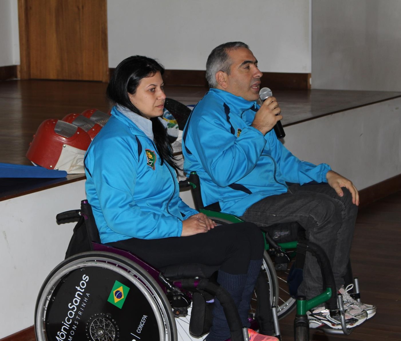 Nessa terça, 2 de agosto, o Colégio La Salle São João recebeu, com muita alegria, os atletas paraolímpicos de Esgrima em Cadeiras de Rodas Mônica Santos e Maurício Stempniak, esportistas da equipe do Grêmio Náutico União (GNU/Asasepode). Mônica é uma das quatro representantes brasileiras nos Jogos Paralímpicos do Rio 2016.