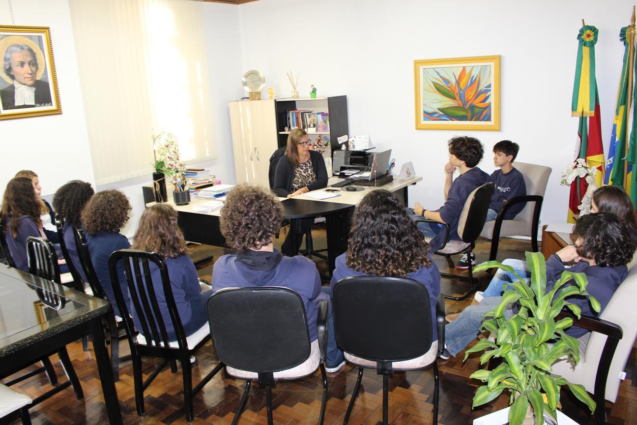 Os alunos representantes do Grêmio Estudantil do La Salle São João estiveram reunidos na manhã dessa quinta-feira, 11 de maio, com a diretora do Colégio, Ana Poppe.
