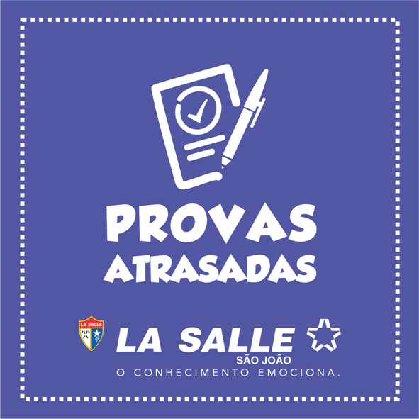 Informamos os alunos do Ensino Fundamental II (6º ao 9º ano) e do Ensino Médio que perderam a P3 e PEM3, do primeiro trimestre, que as provas atrasadas serão realizadas na próxima segunda-feira, 5 de junho, às 14h, no Salão do bloco E.