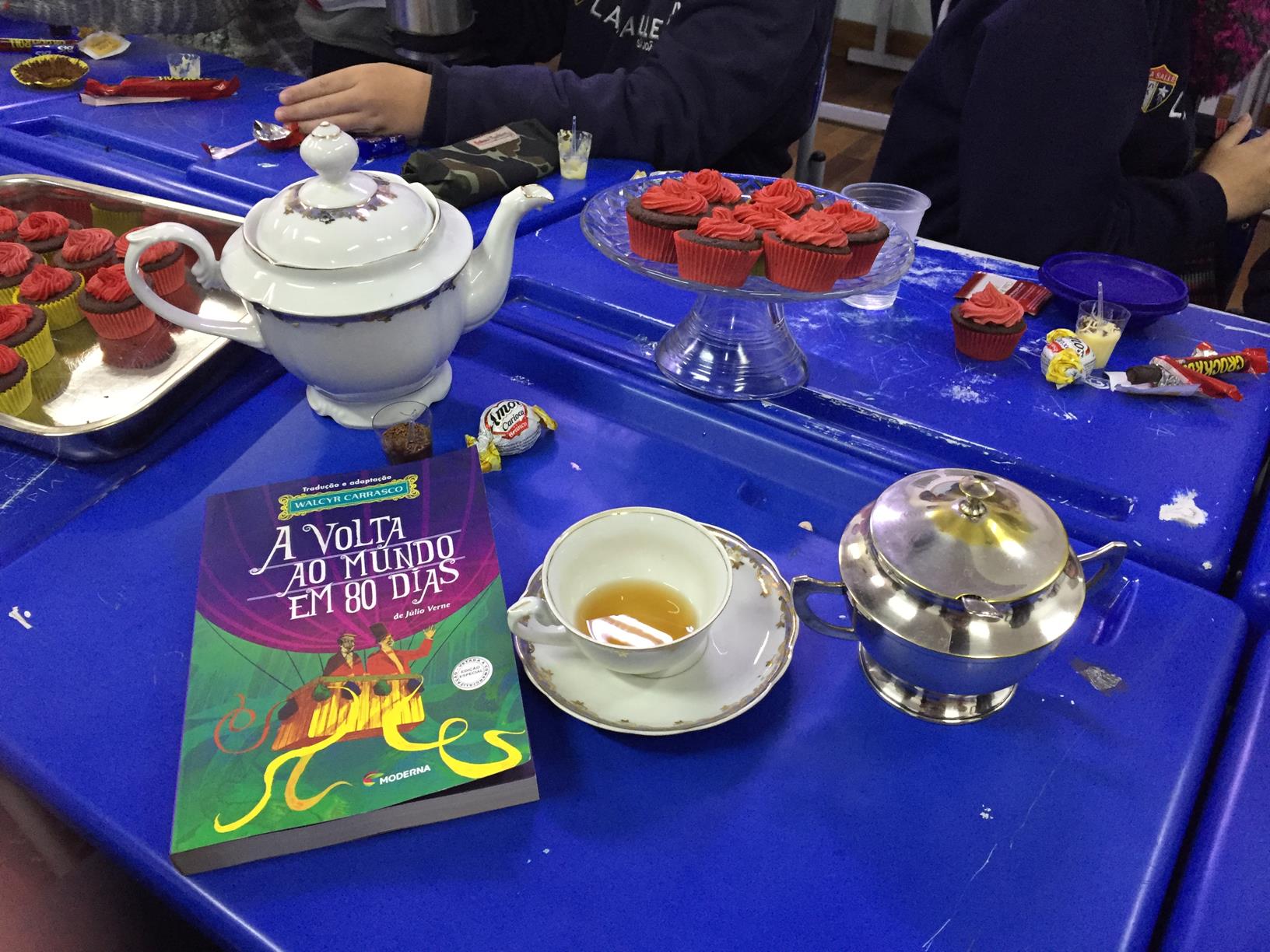 Uma aula saborosa, divertida e recheada de informações culturais e literárias. Assim foi a “Hora do Chá” realizada com os alunos do 6º ano/EF para dar início à leitura do livro “A volta ao mundo em 80 dias”.