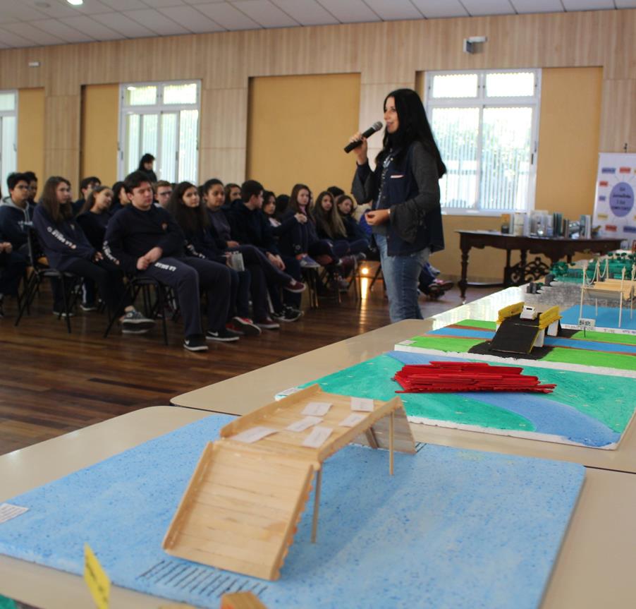 Os alunos do 9º ano/EF receberam a autora do livro trabalhado em Língua Portuguesa, Viviane de Gil. O encontro foi inspirado pela obra “Era uma vez uma ponte”, que narra, em primeira pessoa, o romance vivido pela personagem Íris e os acontecimentos de sua vida após o desabamento de uma ponte.