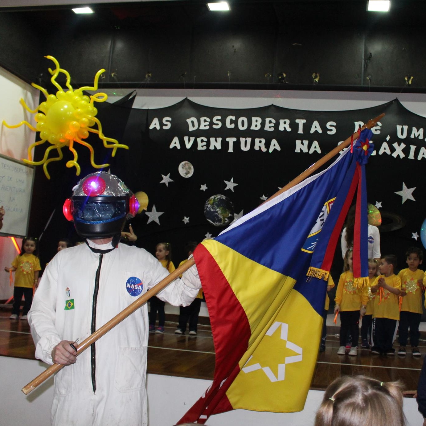 A noite artística contou, ainda, com a presença de um convidado muito especial: o astronauta Yuri, que representou o soviético Yuri Gagarin, o primeiro homem a viajar pelo espaço. Yuri foi o personagem identificador do projeto “As descobertas de uma aventura na galáxia” para os alunos.