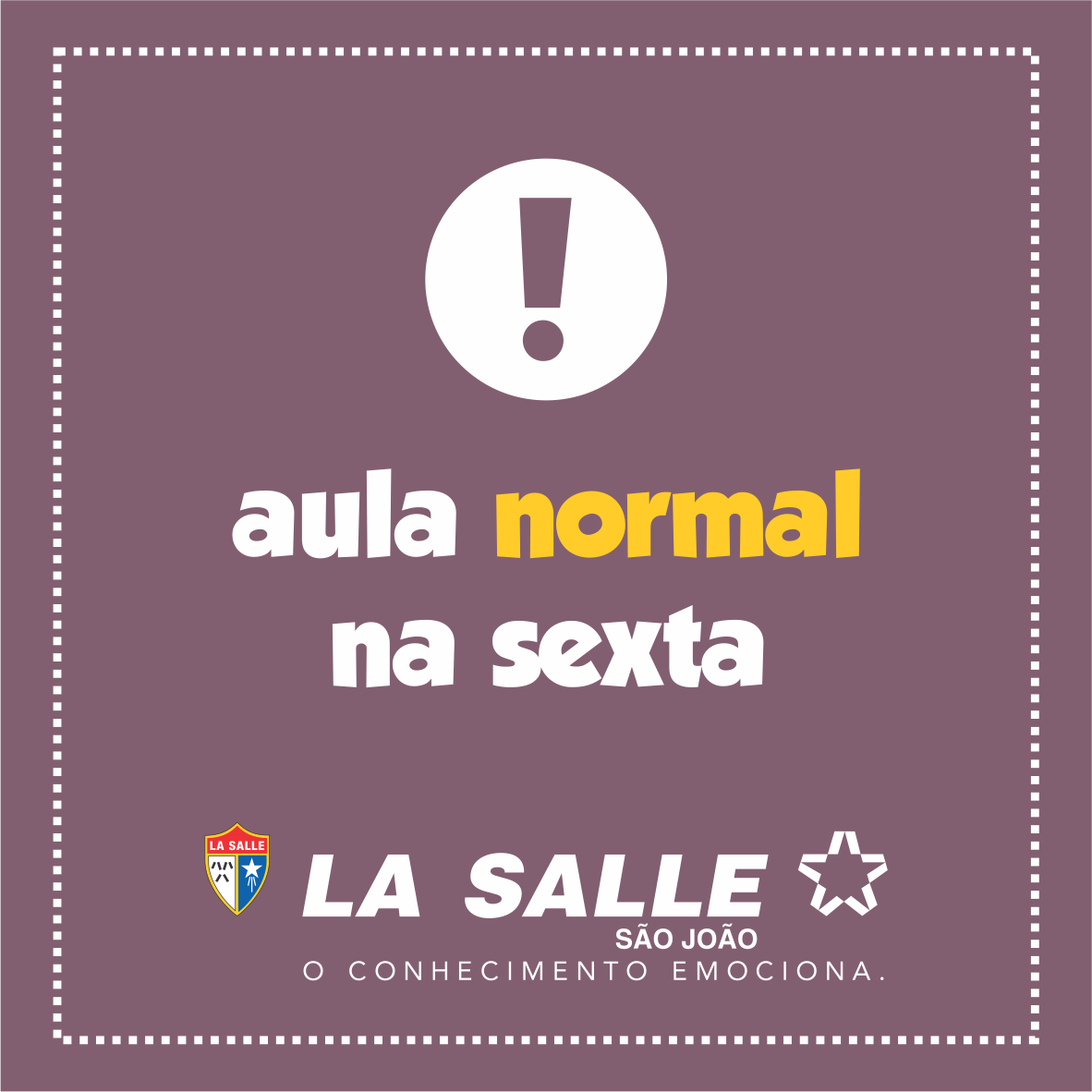 Conforme calendário escolar (disponível aqui), informamos que na próxima sexta-feira, 3 de novembro, haverá aula normal. Na quinta, 2 de novembro, estaremos em recesso devido ao Feriado de Finados.