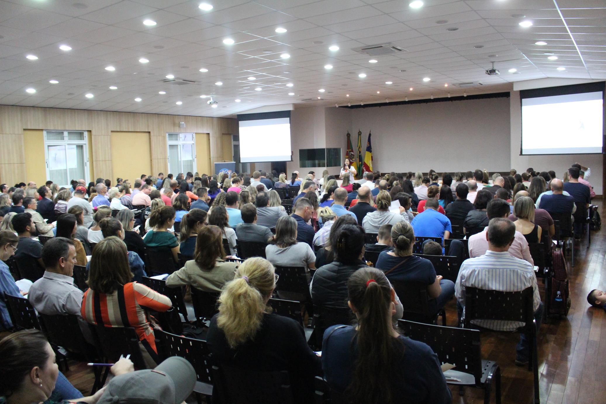 Pais e responsáveis dos alunos da Educação Infantil e do 1º ao 6º ano do Ensino Fundamental lotaram o Salão do bloco D para participar do 1º Curso da Família promovido pelo programa Escola da Inteligência.