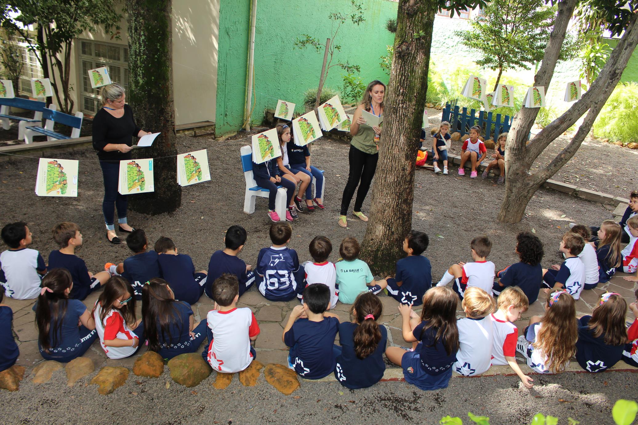Em um cantinho especial do Colégio, rodeados de árvores e ao redor da fogueira fictícia, os alunos do 1º ano do Ensino Fundamental puderam imaginar a história "Ana, A Família e O Baobá" acontecendo bem pertinho.