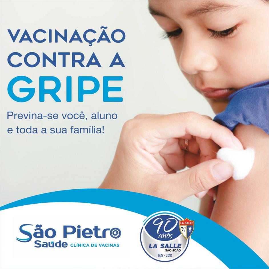 Através de parceria firmada entre as empresas Clínicas Integradas do Unilasalle Canoas/RS e Clínica São Pietro Saúde, o Colégio La Salle São João oferecerá à comunidade educativa a vacinação contra o vírus da gripe (Influenza). Estarão disponíveis para aplicação 400 doses da vacina Tetravalente.