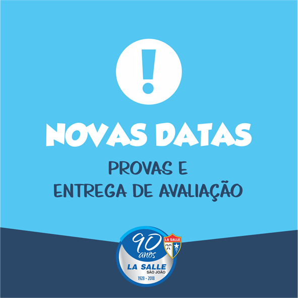 Devido à continuidade da mobilização nacional e das dificuldades de deslocamento, o Colégio La Salle São João decide transferir o calendário de provas previsto para esta semana. Dessa forma, seguem-se as avaliações de acordo com o cronograma abaixo: