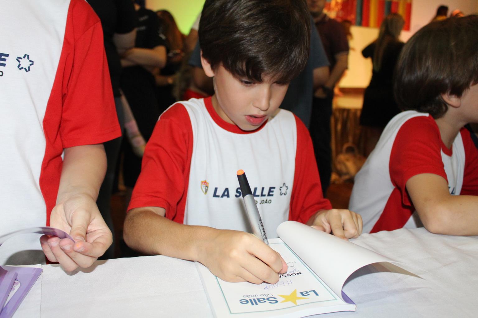 A noite festiva iniciou com as palavras da Diretora, Ana Poppe. Após, os alunos foram recepcionados pelos familiares e apresentaram a paródia “Nossa Festa”. Em seguida, ocuparam os lugares reservados para a sessão de autógrafos, que foi conduzida com alegria pelas crianças e orgulho pelos familiares.