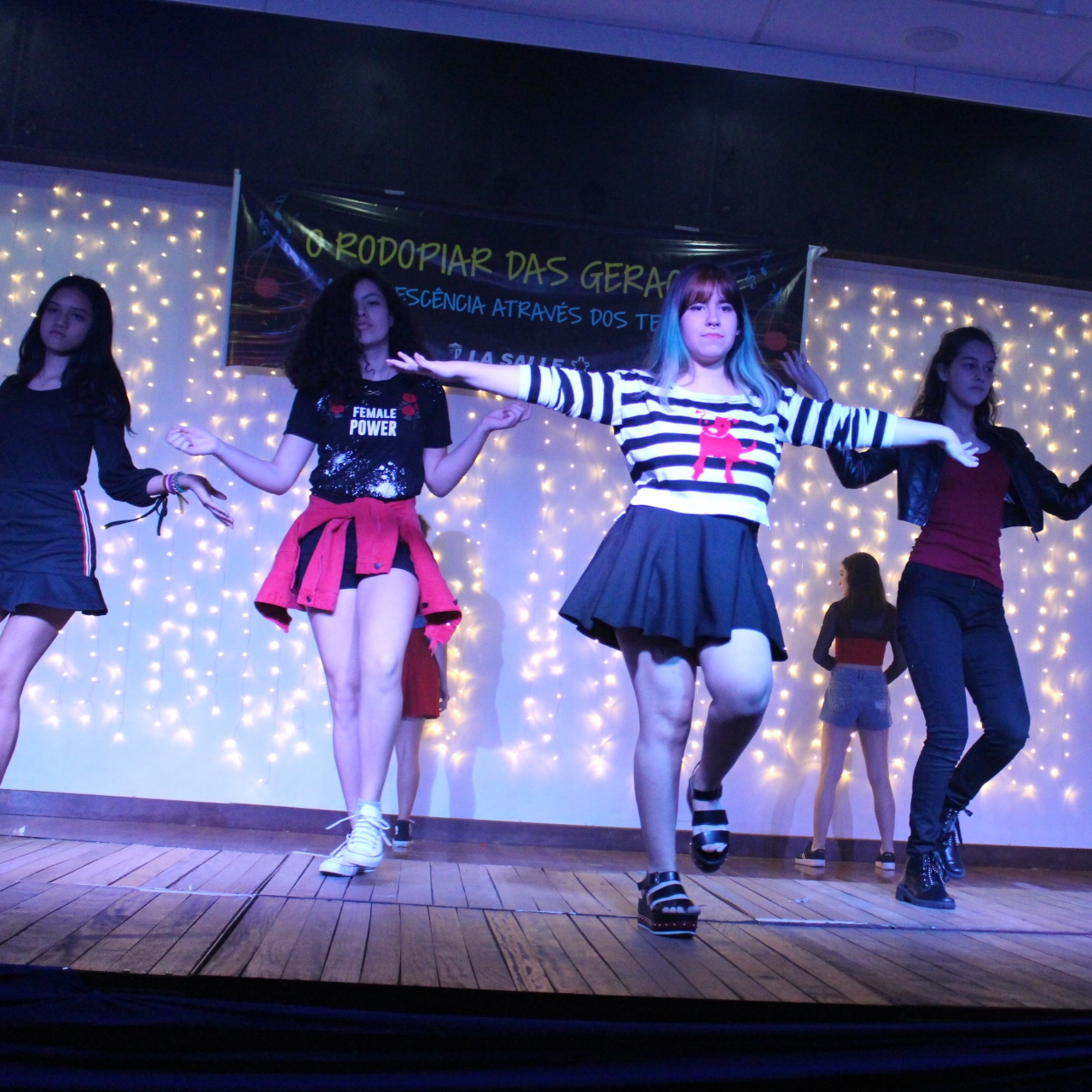 Na sexta, 7 de dezembro, os alunos do 9º ano/EF apresentaram a nona edição do “O Rodopiar das Gerações – A adolescência através dos tempos”. O espetáculo faz uma retrospectiva das décadas, desde os anos 60 até os dias de hoje, evidenciando percepções e questionamentos dos jovens através de dança, canto e teatro.