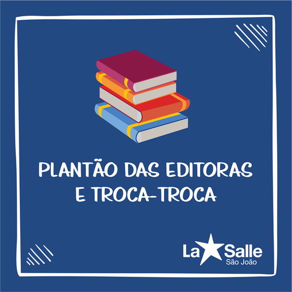 Já nos dias 20 e 21 de fevereiro, o Colégio La Salle São João realiza o Plantão das Editoras na Escola. Participam a Editora Richmond, a FTD e a ZOOM Education. O plantão acontece no saguão do bloco A, das 7h30 às 12h e das 13h às 17h.