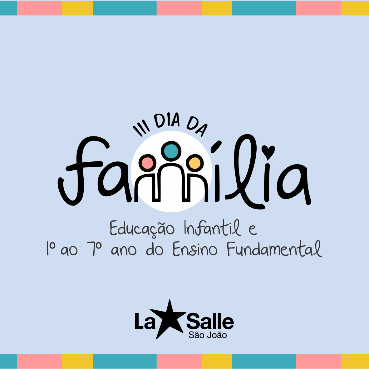 No sábado, 29 de outubro, das 10h às 15h, o Colégio La Salle São João convida pais e familiares dos alunos da Educação Infantil e do 1º ao 7º ano do Ensino Fundamental para o III Dia da Família La Salle São João.