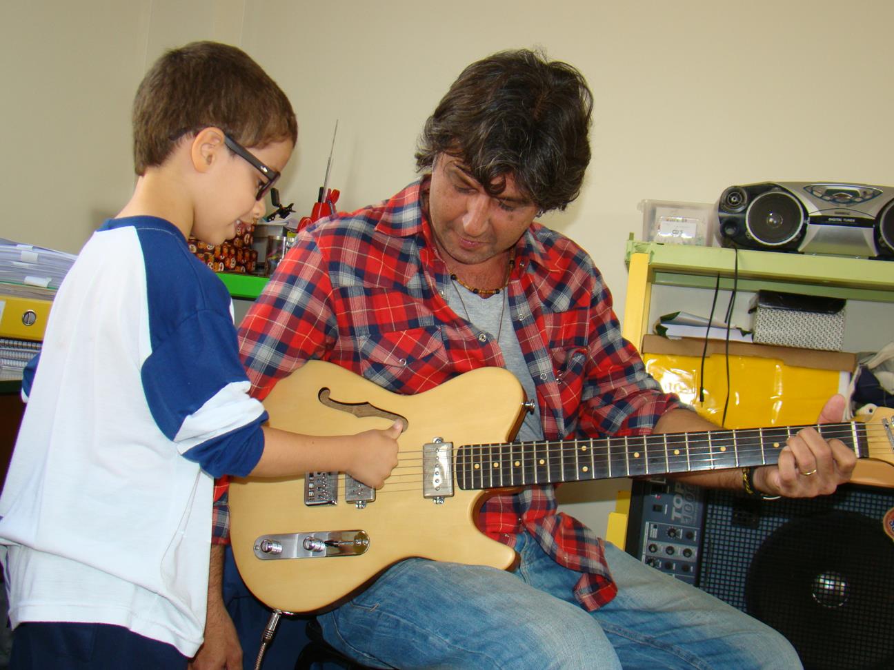Chegou a vez dos alunos do 2º ano/EF serem apresentados a outro instrumento musical: a guitarra. Muito aguardada pelos alunos, a guitarra foi apresentada pelo músico e pai de aluna, Eduardo Gambona. Mediada pela professora de Música, Marilia Mentz, a atividade contou com um bate-papo e audições do instrumento.