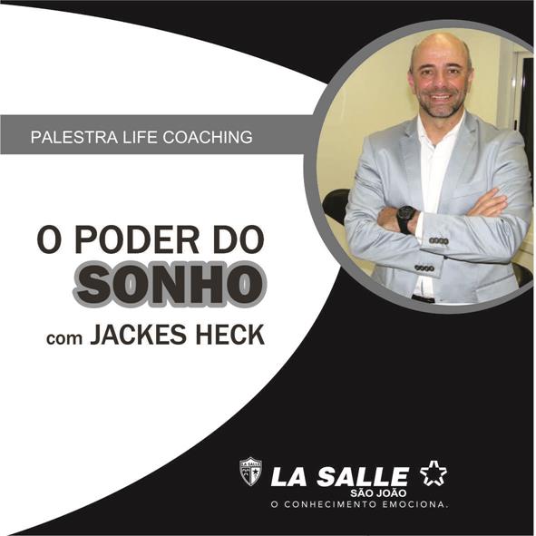 Nesta quarta, 11, o Colégio La Salle São João realiza a palestra “O Poder do Sonho” com o Coach Jackes Heck. Destinado a pais, alunos e familiares da Escola, o evento acontece às 19h, no Salão do bloco D. A entrada é 1 kg de alimento não perecível.