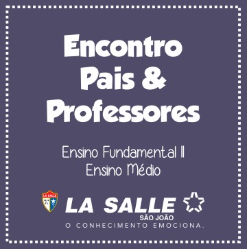O Colégio La Salle São João convida pais e/ou responsáveis dos alunos do Ensino Fundamental – Anos Finais (6º ao 9º ano/EF) e Ensino Médio para um encontro com os professores no qual serão tratados assuntos referentes à aprendizagem dos alunos.
