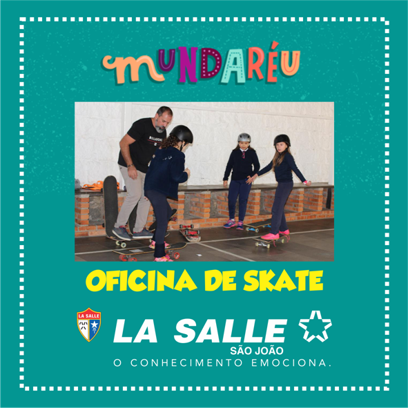A Oficina de Skate, nova Atividade Extraclasse do Colégio La Salle São João, terá início no dia 2 de junho. As aulas são destinadas a alunos a partir de 5 anos e serão oferecidas às quintas-feiras em dois horários: pela manhã, das 10h30min às 11h30min e, à tarde, das 18h15min às 19h15min.