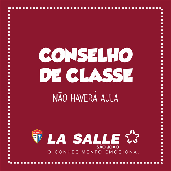 Comunicamos que em virtude de Conselho de Classe do 1º Trimestre não haverá aula para o Ensino Fundamental - Anos Finais (6º, 7º, 8º e 9º ano) na terça-feira, 31 de maio, e para o Ensino Médio na quarta, 1 de junho.