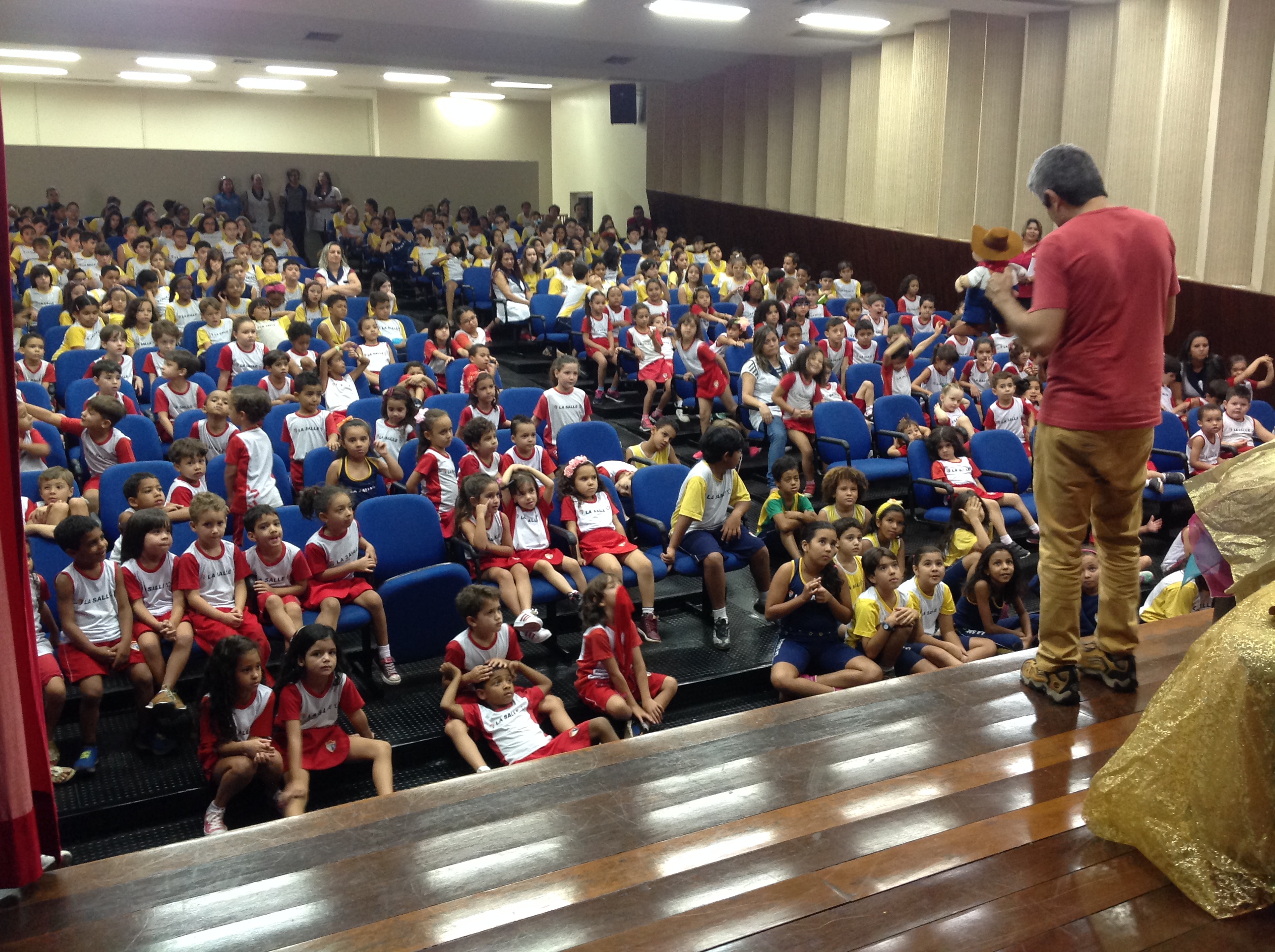 O escritor infantojuvenil, Jonas Ribeiro, esteve ontem (11) no Auditório Azul do Colégio La Salle Sobradinho. Apresentou suas histórias, como “As orelhas da Sofia” e “Os pés folgados do Gustavo” e ao final das narrativas, autografou os livros e tirou fotos com os estudantes da Pré- Escola I e do Ensino Fundamental I.