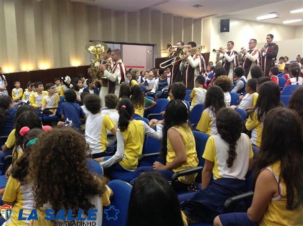 Pela primeira vez no auditório Salão Azul do Colégio La Salle Sobradinho, o Grupo Musical Arautos do Evangelho se apresentou ontem para os estudantes do Ensino Fundamental I e II e 1ª e 2ª séries do Ensino Médio.
